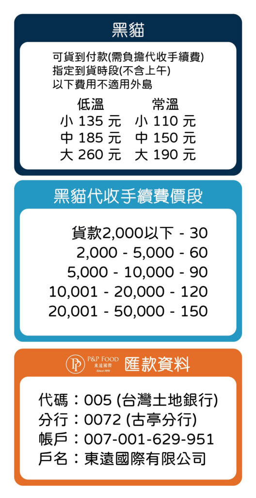 B.必須安排貨運行配送:每週四12:00前訂貨,安排隔週一全程貨運取件配送,送達時間以貨運行安排約 1~2天,有特殊收貨時間及注意事項,請於訂貨時務必作備註。