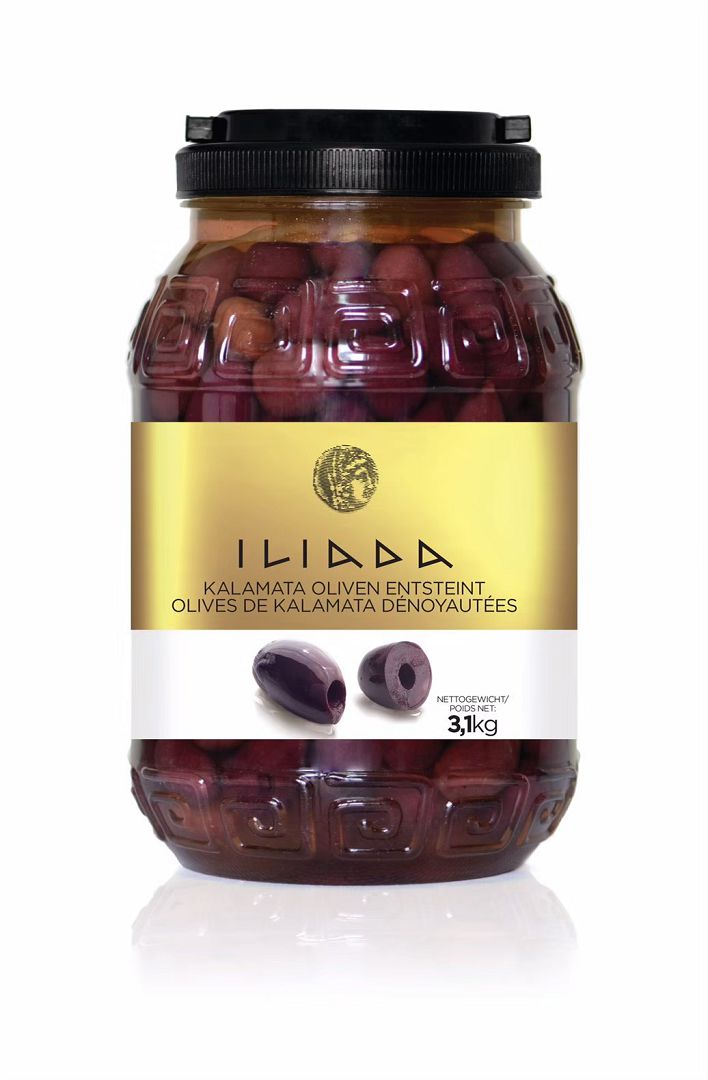 Iliada Sliced ​​Kalamata Olive 1.8kg*6/box ILIADA uses olives from the renowned city of Kalamata, Greece, which holds P.D.O.