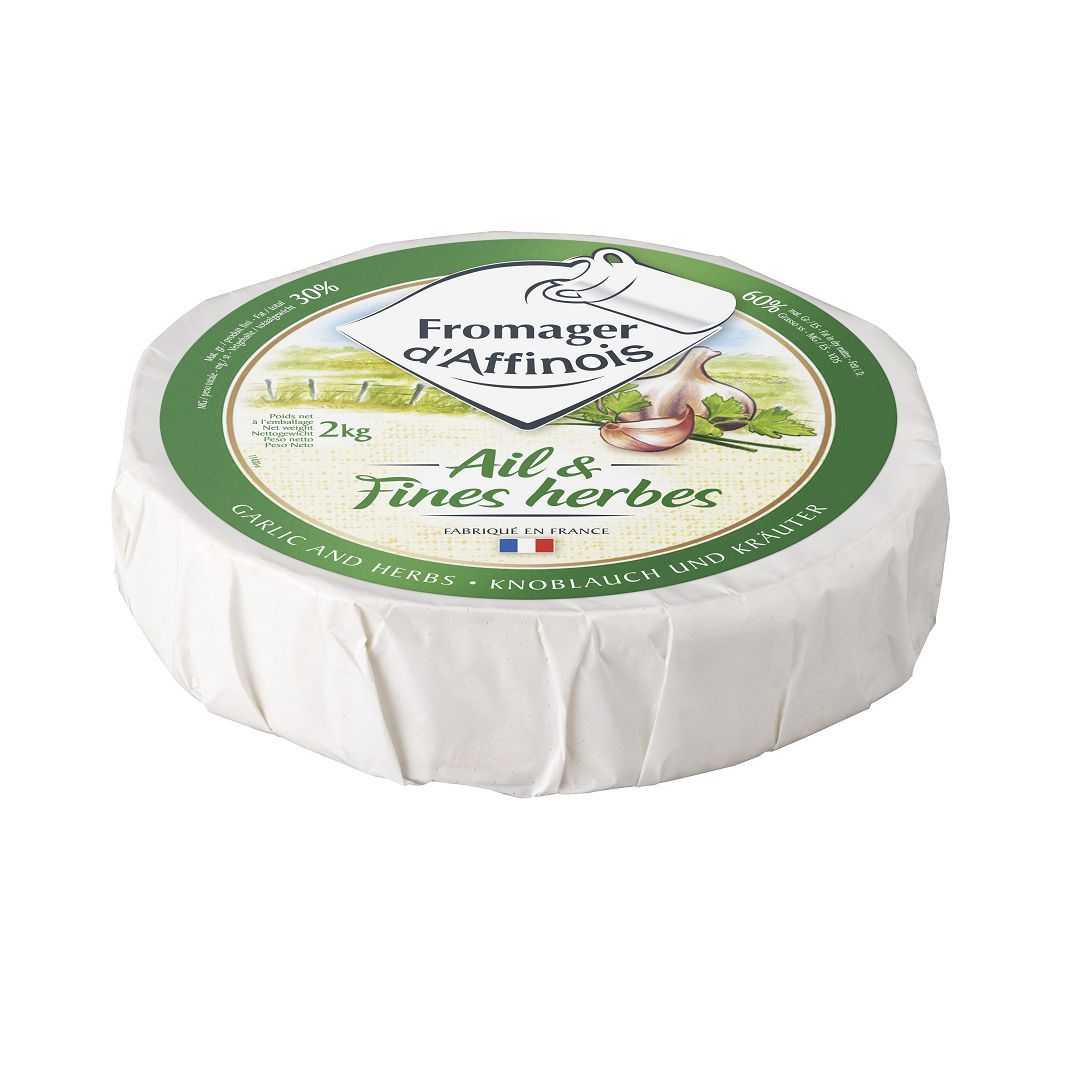 Garlic, shallots, parsley, and celery coat the crust of aged soft cheese and are evenly distributed throughout the double cream, creating an appealing appearance and an irresistible flavor combination.