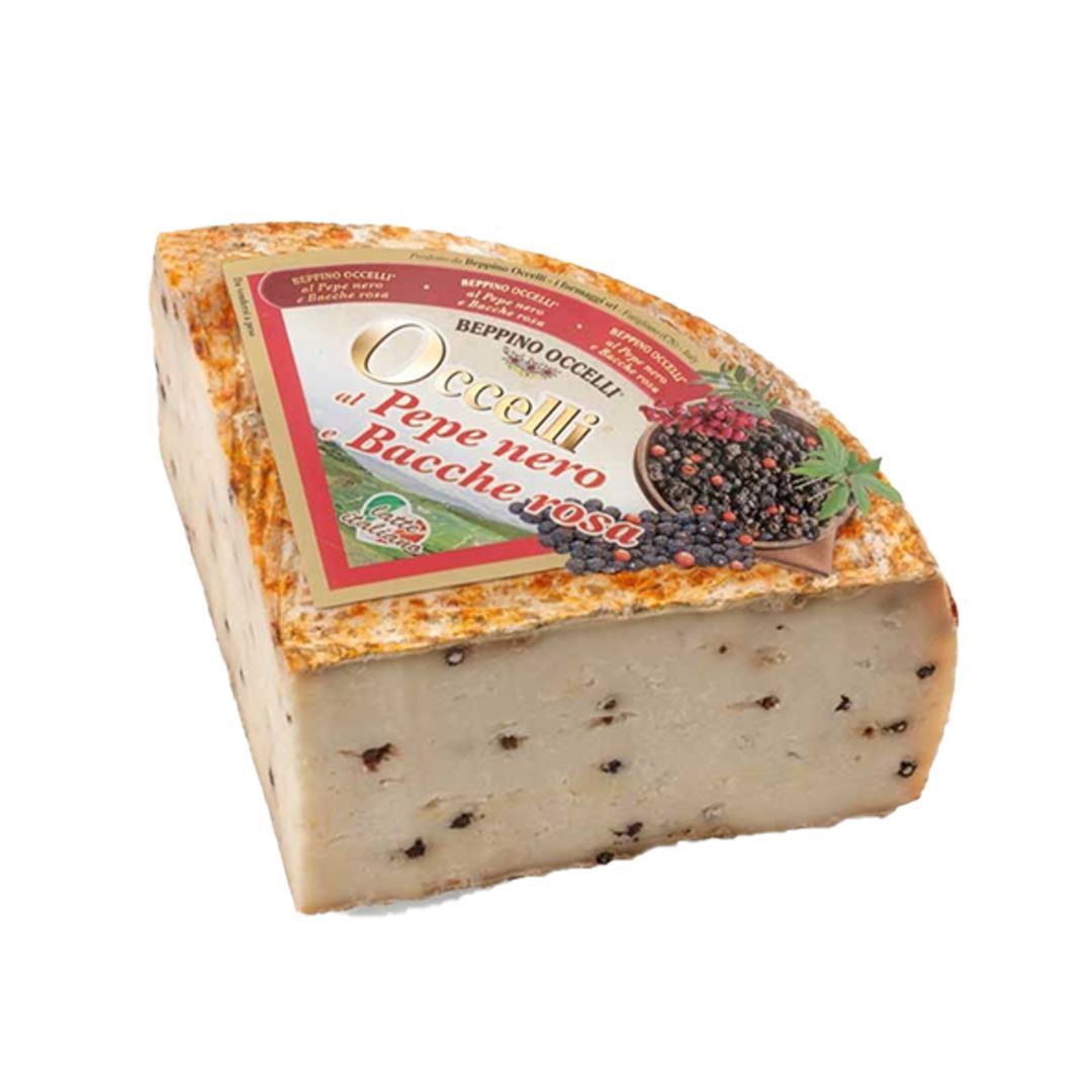 Made with 49% cow’s milk and 49% sheep’s milk. Aged for at least four months. Contains black and red peppercorns, enriching the flavor and aroma. Pairs well with craft dark beer and whiskey.