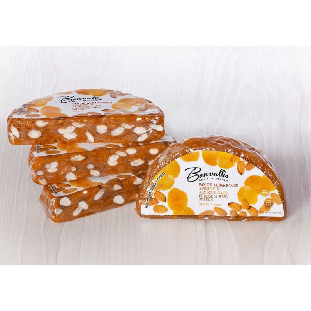 Bonvallis Apricot and Almonds Cake, from Madrid, Spain, is a traditional Mediterranean dried fruit dessert. Handmade with locally sourced dried figs, dates, apricots, and other fruits, it boasts a natural sweetness and is paired with nuts such as almonds and walnuts. Rich in fiber and minerals, it’s high in fiber and gluten-free. Every bite offers the rich flavor of Mediterranean fruits and nuts! It also pairs perfectly with various flavored cheeses, foie gras, and meat sauces for an even better taste.