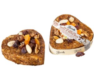 Made with select Spanish Pajorero dried figs (42%), Tunisian dates (19%), and Turkish apricots (19%), with added Valencian almonds (10%) and candied orange peel (10%). Perfect with blue cheeses such as Roquefort and Gorgonzola, and various aged camellias.