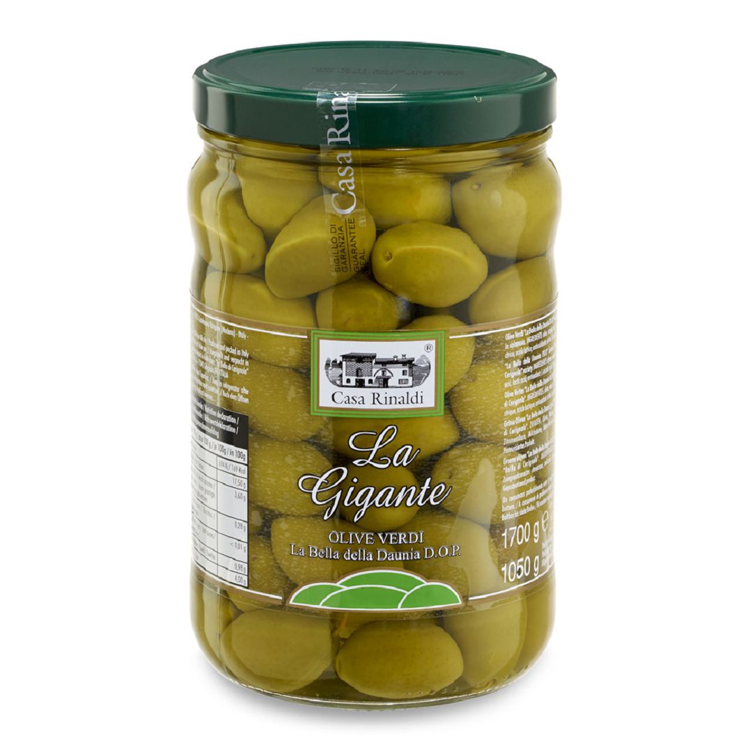 Casa Rinaldi Green Olive 580g*12/box Made from large Ceriniola green olives using the unique Siviglia Method, this product
