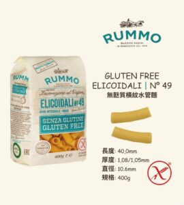 RUMMO N.49 Elicoidali Gluten Free 400g*12/box Gluten-free, with a ribbed surface and large hollow diameter, perfect for pairing