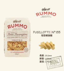Rummo N.155 Fusillotti 500g*12/box Larger than regular fusillotti, this is Rummo's exclusive pasta shape, allowing it to hold