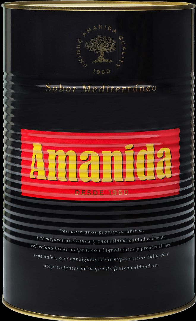 Made with carefully selected seedless green olives, pickled cucumbers, garlic, mini onions, and black olives, preserving the fresh flavors of the ingredients. Slightly crisp with a sweet aftertaste, this product is widely used in classic Spanish cuisine worldwide. Suitable for tapas, salads, light meals, cold dishes, and other appetizers. Net weight: 4000g (2500g solids). Shelf life: 5 years unopened.