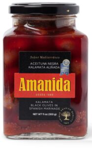 Amanida Kalamata Black Olive 530g*6/box Unique Greek Kalamata olives, characterized by their long shape, glossy black color, firm