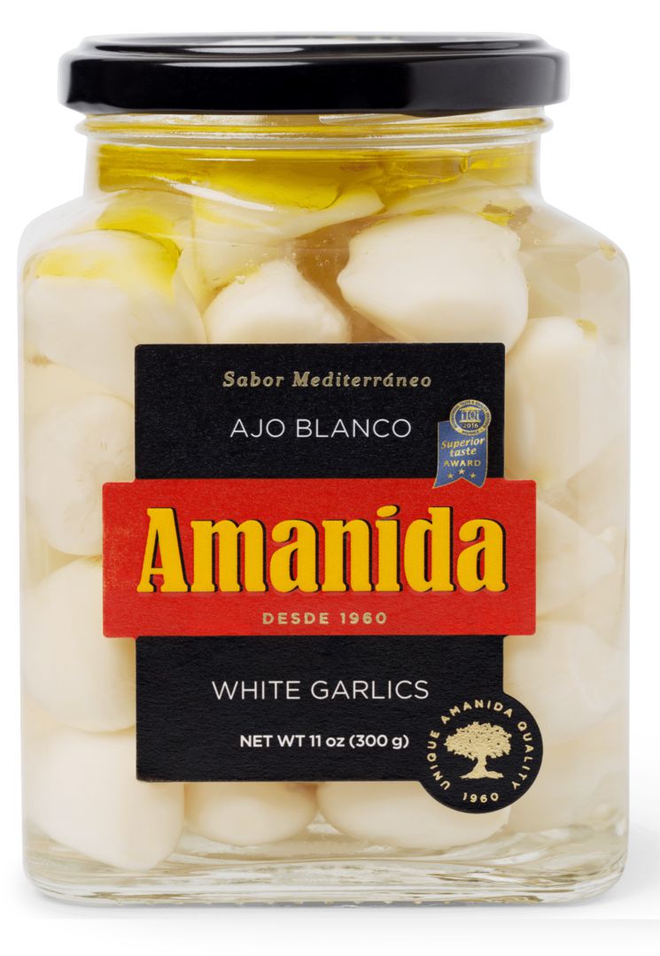 Made with carefully selected fresh white garlic using a special method, preserving its fresh flavor and anti-inflammatory properties. Slightly crisp with a sweet aftertaste and not pungent, it’s widely used in classic Spanish cuisine worldwide. Suitable for tapas, appetizers, salads, light meals, pasta, pizza, etc.