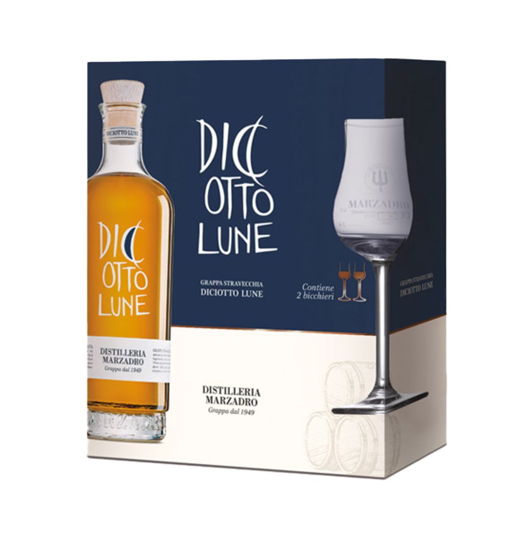 Marzadro Le Diciotto Lune (41%) 500ml + 2 glasses * 4/case