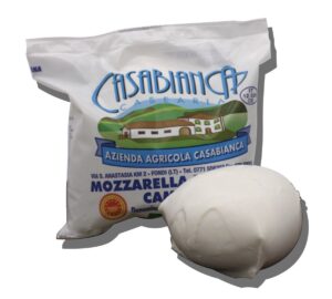 Category: Fresh Cheese/Minimum Milk Fat 52%/Buffalo Milk. Buffalo milk cheese production areas are strictly regulated. Its name comes from the word “tearing” in the manufacturing process: finely chopped curd is kneaded into a ball with hot water and then torn open and placed in cold water. The fresher the cheese, the more milk will seep out from the cut surface. It is a main ingredient in Caprese tomato and cheese salad and an indispensable ingredient in pizza. It pairs well with light red or light white wines.