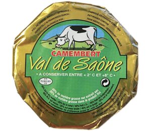 Camembert is a classic soft white mold cheese made from cow’s milk. It has a soft, moist texture and a rich, creamy flavor. The velvety white mold rind has a slightly chewy texture, while the inner layer has a creamy consistency. It pairs well with crisp red wines such as Beaujolais, Chenin Blanc, St. Emilion, and St. Estephe. ​​Of course, the most authentic way to enjoy it is with Normandy cider.