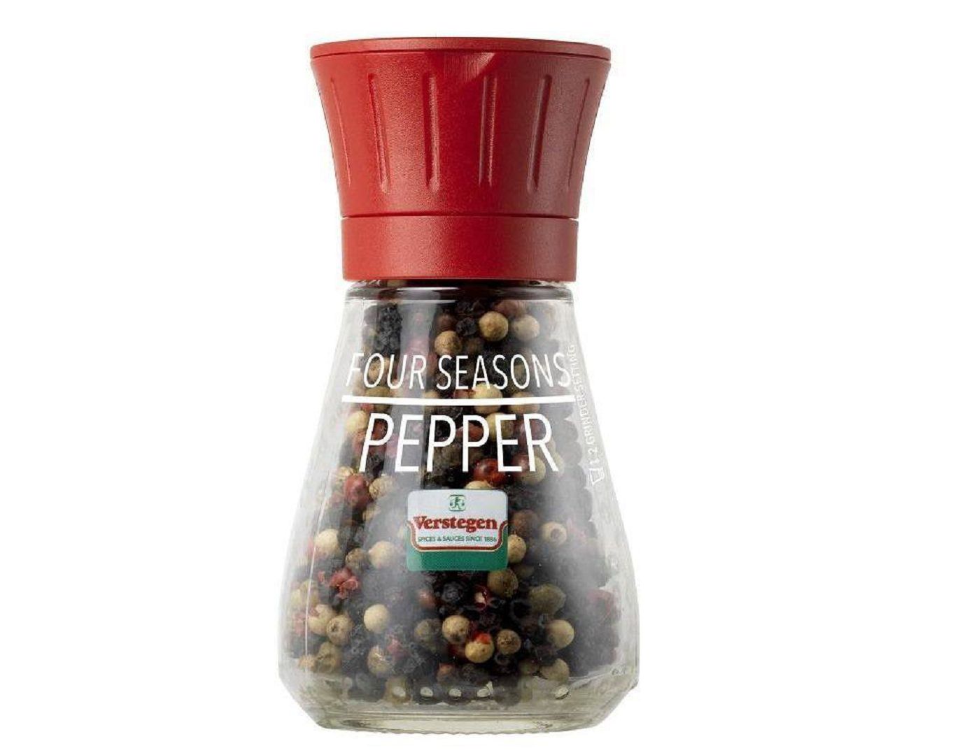 Of Verstegen’s four-color peppers, only green, black, and white are actually made from peppercorns in different stages of ripeness. Red pepper is actually the berry of the Brazilian pepper tree. Green pepper is harvested and dried before the peppercorns are fully ripe; black pepper is also harvested before ripeness and then cured to retain its color and spicy flavor; white pepper is harvested after the fruit has fully ripened and turned red, then soaked in water to remove the outer skin and pulp before drying; and red pepper, being the berry of the Brazilian pepper tree, has a refreshing and pleasant flavor that blends perfectly and brings out a high level of complexity. It’s suitable for adding flavor to any dish, including salads, roasted vegetables, meats, and soups.