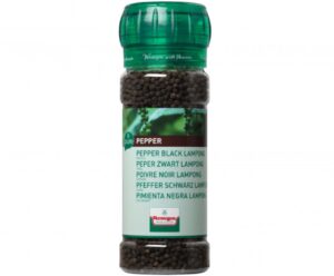 Made in Lampong, Indonesia, these black peppercorns have whole kernels, a strong and intense flavor, and a pungent spiciness.