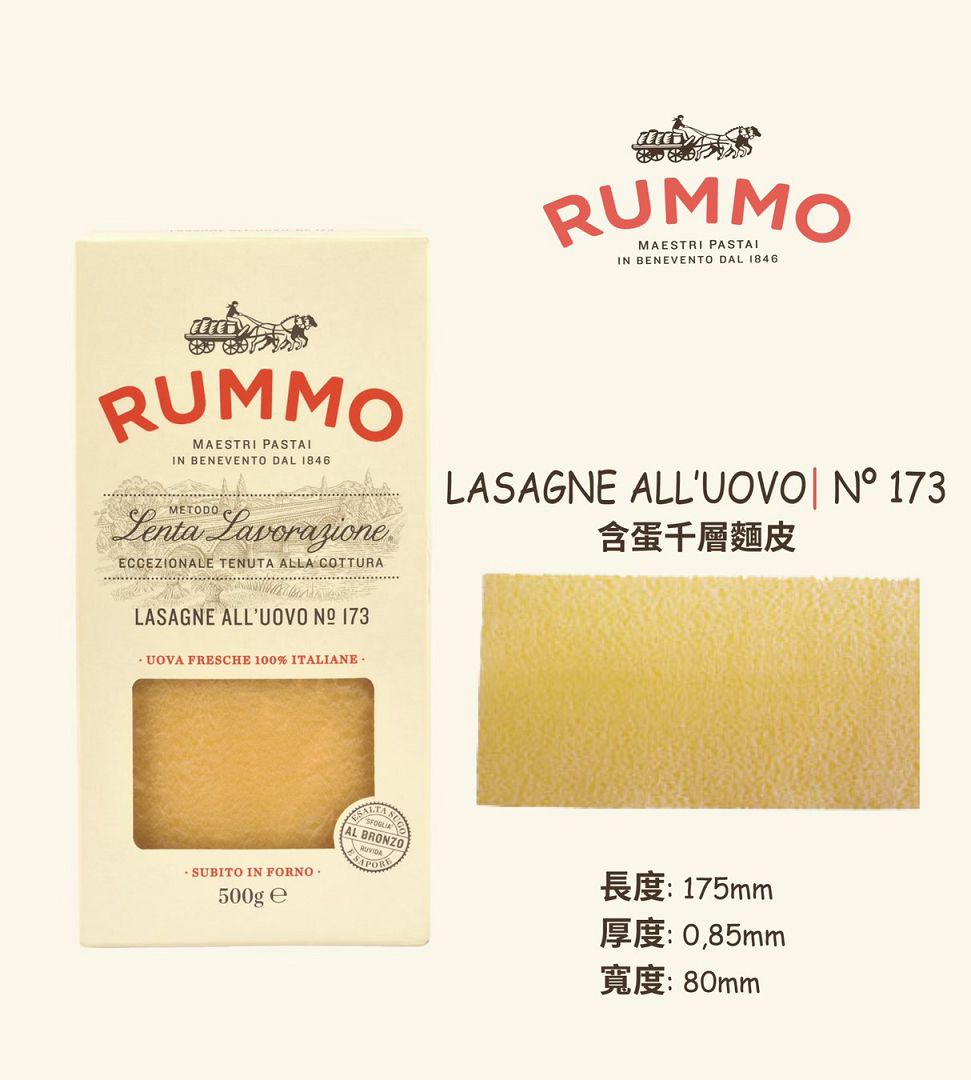 以杜蘭小麥粉(Durum Wheat)加上新鮮雞蛋製成。長方形麵皮,通常在麵皮上抹上醬料並層層疊放,做成焗烤千層麵。建議搭配:以碎肉做成的肉醬;或以糖、牛油、水果、果乾、籽實做成的甜品。